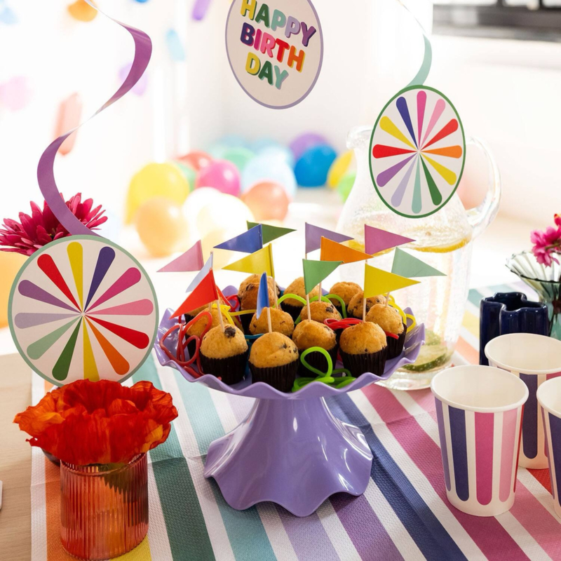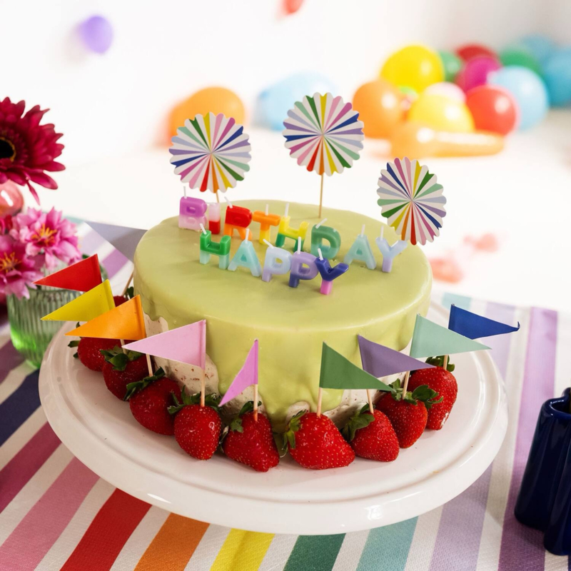 Set van 10 vrolijk gekleurde cocktail prikkertjes met een vlaggetje. Deze leuke prikkertjes zijn te gebruiken voor lekkere hapjes tijdens je verjaardagsfeestje of om je verjaardagtaart of cupcakes extra leuk mee te decoreren.