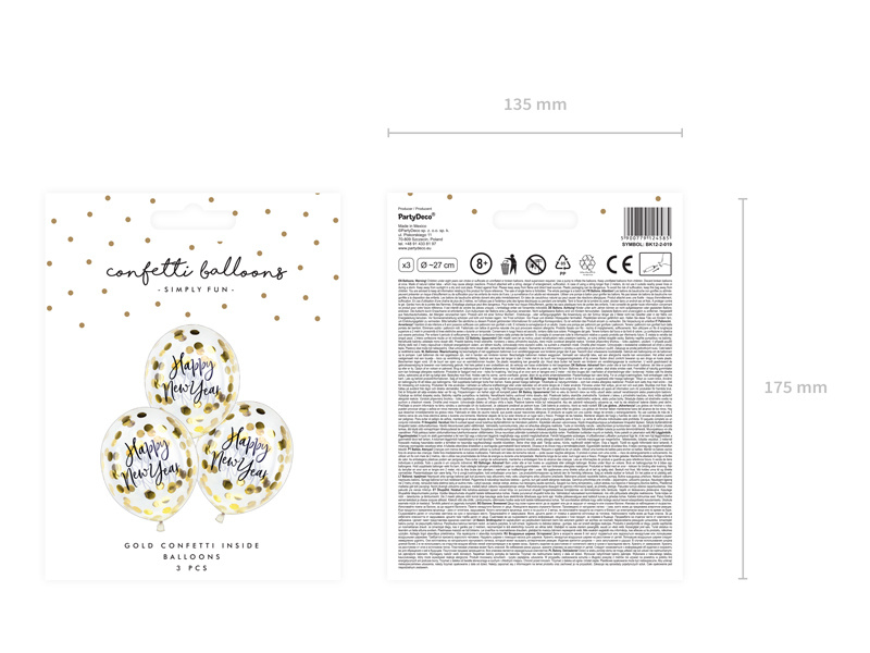 Deze confetti ballonnen worden per set van 3 verpakt en zijn goed te combineren met zwarte of andere goudkleurige feestversieringen.