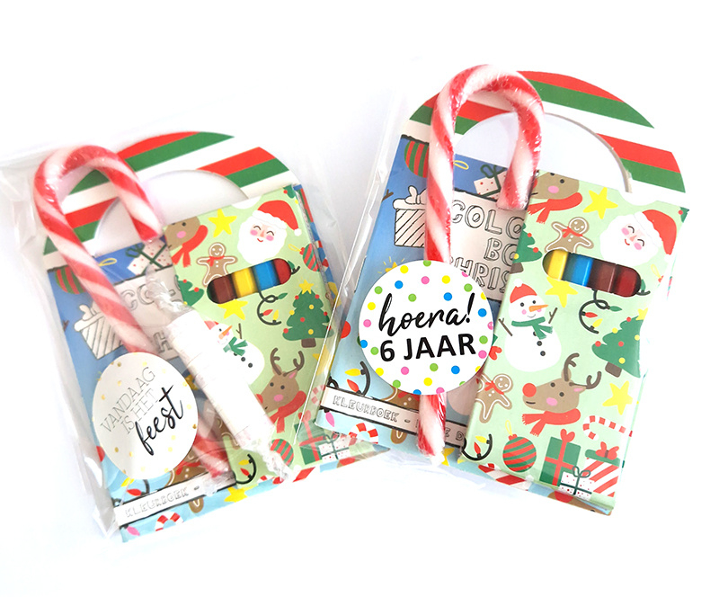 Ben je jarig rond de kerstdagen en wil je je traktatie daarop aanpassen? Dan is deze traktatie helemaal geschikt voor jou. Een leuke kerst traktatie met een kerst kleurboekje en kerst kleurpotloodjes aangevuld met een fraaie Candystok om te snoepen. Ook zit er een leuke ronde wenssticker bij die je helemaal naar wens kan kiezen.